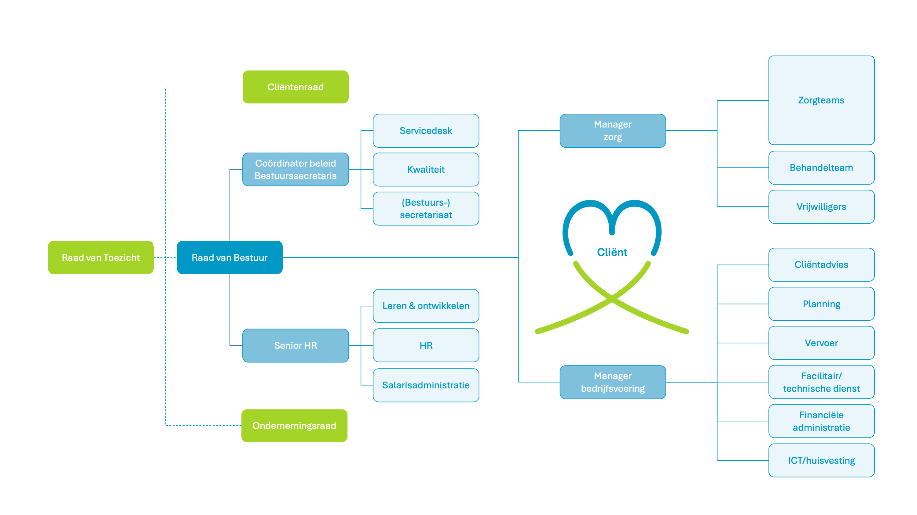 De bestuurder legt verantwoording af aan de Raad van Toezicht. De Raad van Toezicht heeft een actief adviserende rol en is sparringpartner voor de bestuurder. In haar toezicht sluit zij aan bij de visie en kernwaarden van de organisatie en werkt zij vanuit de zorgbrede Governancecode en haar eigen toezichtvisie.
