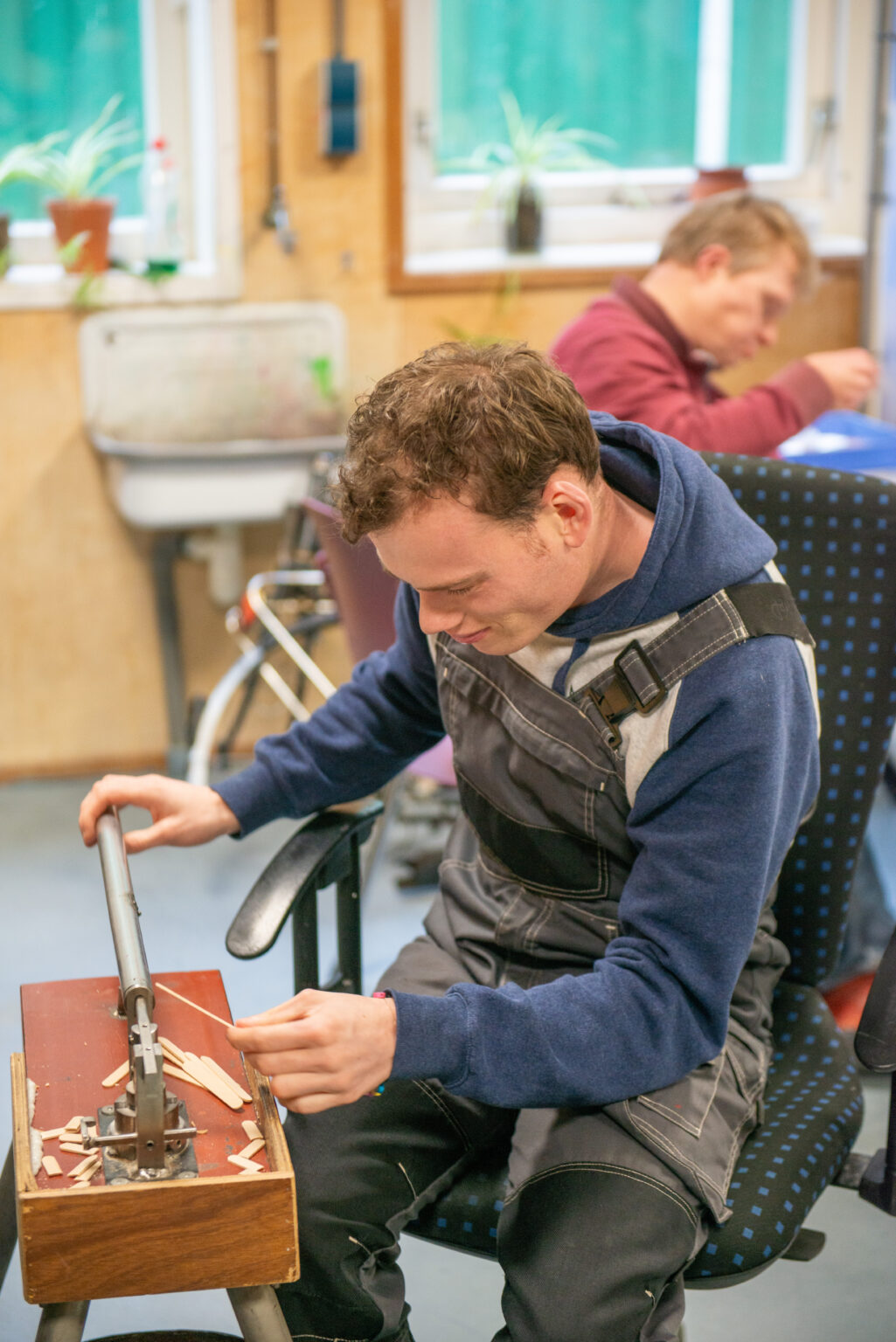 In vijf verschillende groepen doen onze cliënten waar ze blij van worden. Zo is er een belevingsgerichte groep met sensomotorische activiteiten, het maken van muziek, wandelen, fietsen of boodschappen doen in het dorp. Anderen ondersteunen de facilitaire dienst door koffie rond te brengen, de was te sorteren of te helpen in de keuken. De cadeau- en naaigroep maakt en verkoopt handgemaakte cadeaus, ook op bestelling. Dan is er nog een groep die drukwerk verzorgt: kopiëren, inbinden, lamineren of mailingen verzorgen. Onze cliënten voeren elke opdracht met zorg en plezier uit. Zo maken we samen werk van een fijne dag.